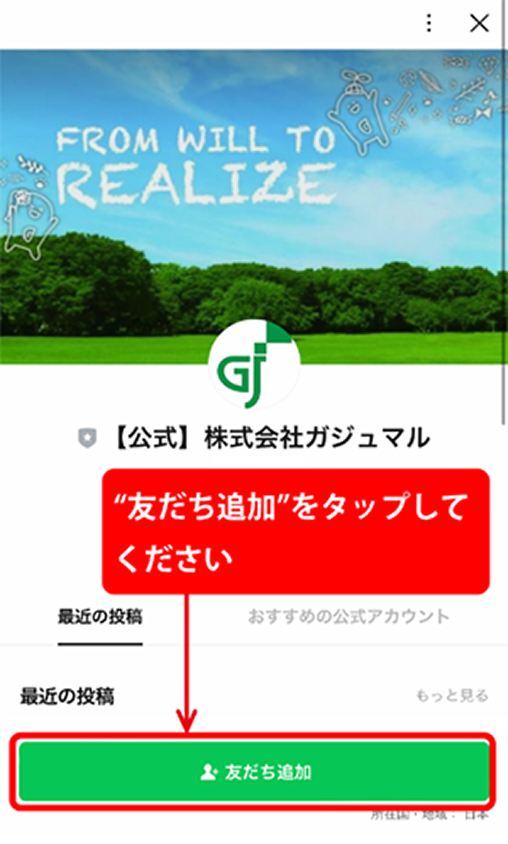 LINE公式アカウントでは株式会社ガジュマルの