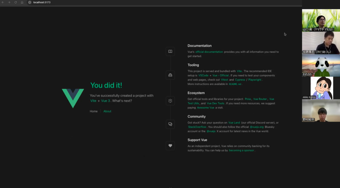 初めてVue.jsに触れる方や、開発環境のセットアップに自信がない方にとっても取り組みやすい内容で、参加者からも「じっくり確認しながら進められて安心できた」との声が上がりました。